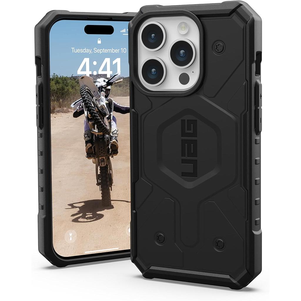 The Pathfinder Series is the perfect companion for action and adventure, featuring MagSafe accessory compatibility. Featuring an ultra-lightweight armor shell, an impact-resistant frame, and a hex pattern core, providing enhanced drop and shock protection to keep your device safe in any situation. The enhanced perimeter raised screen surround ensures that your display remains shielded from accidental drops and impacts, while the TPU bumpers provide added corner protection. With the powerful built-in magnet module, your device securely locks in place, ensuring seamless MagSafe charging compatibility. This is the ultimate protective companion, combining rugged durability and a timeless UAG design. Built-in MagSafe module. Compatible with Apple Pay Feather-light composite construction. Oversized tactile buttons Enhanced corner protection. Integrated lanyard anchor points & lanyard card compatibility (lanyard not included) 18 ft. Drop Protection (5.4 meters)