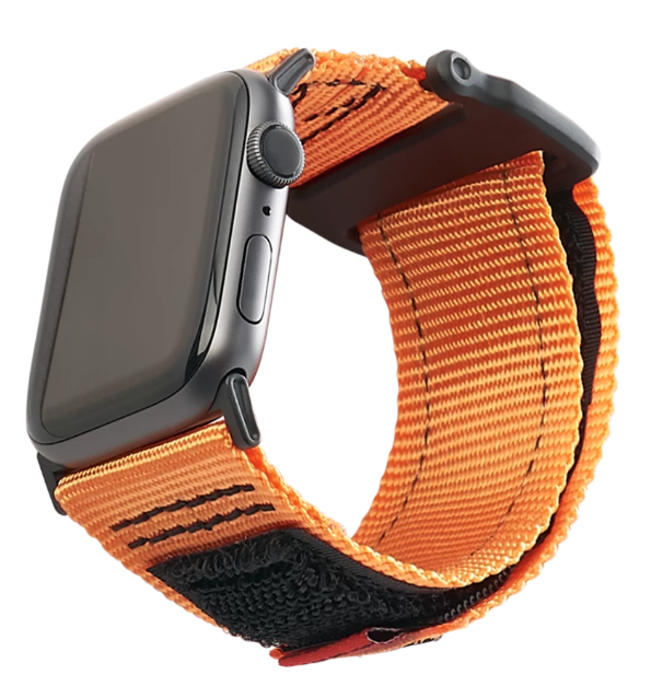 UAG Apple Watch 44mm/42mm Active Strap Built for the rugged adventurer, the Active Band is designed to be one of the strongest Apple Watch bands on the market. High strength materials work together to provide the peace of mind you need to take your Apple Watch along on your most rigorous activities. High Strength Nylon Weave Stainless Steel Custom Hardware Hook & Loop Fastener Security Designed for Apple Watch Series 1-5 Our watch band fits most wrists 44/42mm: 152mm- 210mm