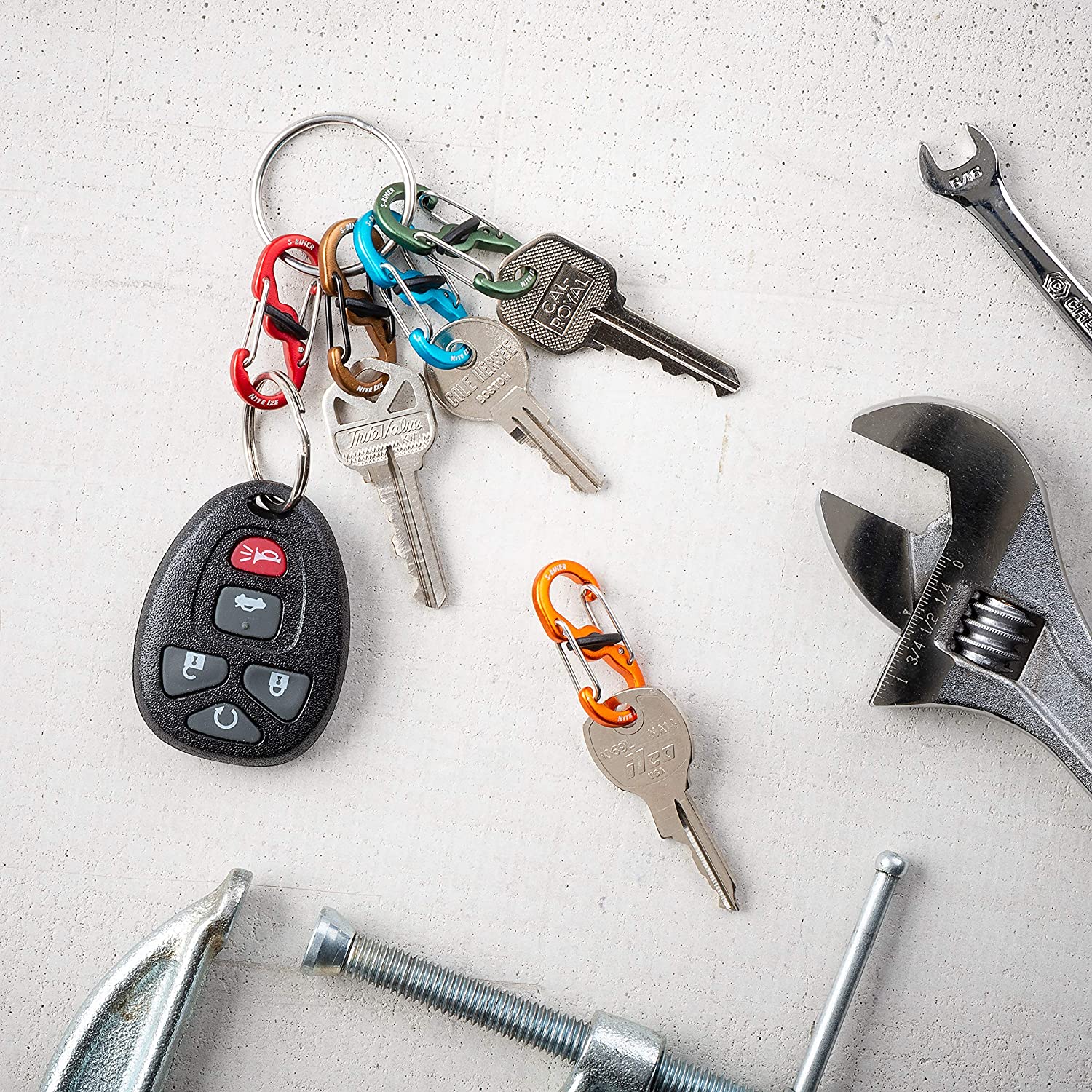 -Aluminum -Imported -A BETTER WAY TO HOLD YOUR KEYS - This keychain pairs a 1" solid, stainless steel ring with five lightweight yet sturdy aluminum S-Biners to securely hold, attach, remove, and identify keys. -SAY GOODBYE TO SPLIT RINGS - With the included double-gated locking S-Biners, one side clips to your key ring while the other clips to your key - no need for frustrating split rings. -HIGH QUALITY STAINLESS STEEL KEY RING - This keychain includes a solid 1" stainless steel ring to securely hold the five S-Biners through years of constant wear and tear. -TWIST-TO-LOCK SECURITY AND SIMPLICITY - The aluminum S-Biner MicroLocks each securely hold up to three keys, with a simple twist of the center lever to lock the gates. -ASSORTED COLORS TO IDENTIFY KEYS - The vibrant assortment of anodized color coatings on each MicroLock allow you to easily organize and identify the key you need at a moment's notice.