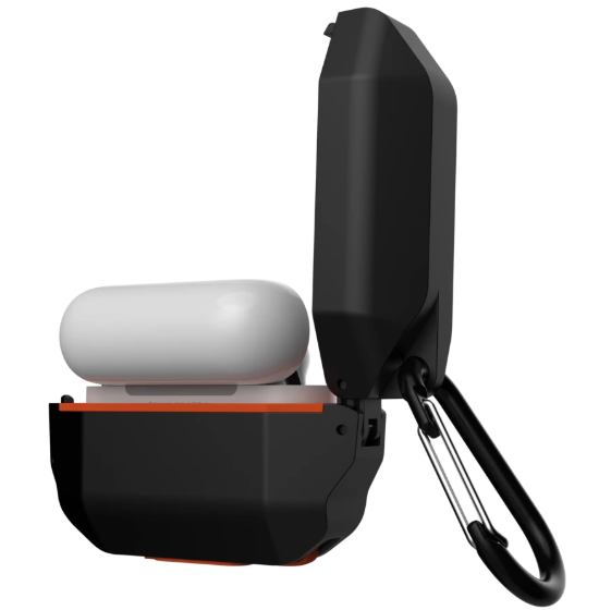 Hard TPU exterior Soft-touch silicone interior Lighting port plug to protect from dust and water intrusion Rugged Weatherproof Protection Drop Tested // MIL STD 8105G Dust Proof, Water Resistant Detachable Carabiner Included Easy Access Quick release button to access your pods Wireless Charging compatible // charge light shows through case so you know it's charging