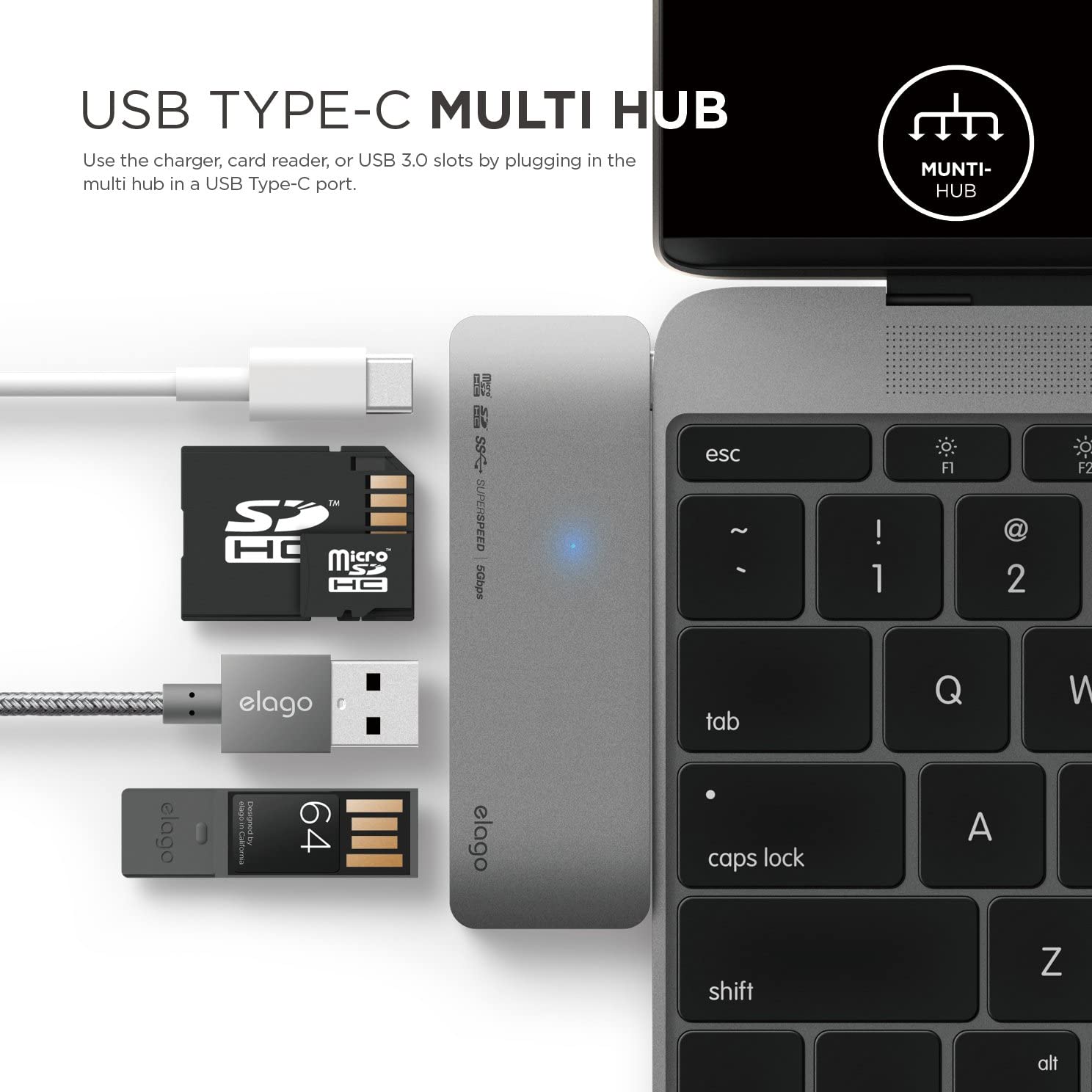 USB TYPE-C MULTI HUB : Multi hub has a USB Type-C port, SD Card Reader, MicroSD Card Reader, and two USB 3.0 ports. POWER DELIVERY: Charging your laptop while connecting multiple peripherals and transferring data; NOTE: The item can charge your computer while you work, two memory slots, two USB which will allow you to charge external items while you work (2Watt MAX), limited by high wattage. ADDITIONAL USB TYPE-C PORT FOR CHARGING : Additional USB TYPE-C port allows you to use multiple devices simultaneously while charging without worrying about the battery. Products with high power consumption (HDD external hard disk, iPad, etc.) are supplied with stable power. COMPACT WITH LUXURIOUS FINISH : 100x100 (mm) in size and weighs less than 25g making it the ideal traveling buddy. The multi hub is manufactured with the same high-grade aluminum material and the same surface treatment method as the MacBook. Not only the perfect traveling buddy, but one that matches too! DISCLAIMER: As stated in under "POWER DELIVERY", the multi hub is limited by wattage. Improper use can cause product to overheat.