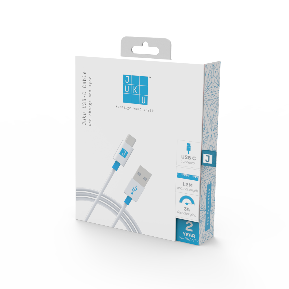 Juku USB-A to USB-C fast charging 3A charge and sync cable FEATURES: Compatible with all devices with a USB-C port Tangle Free Cable 3A fast charging Supports High Speed USB 2.0 Data Strain Relief to protect your cable Convenient 1.2M cable length