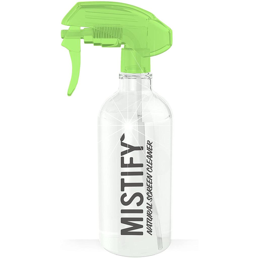 *Mistify - the ultra effective screen cleaner designed to remove grease and smudges, leaving a residue free, fingerprint resistant surface. *Crafted from a blend of plant extracts, this Natural, non-toxic, alcohol and ammonia free solution is fully biodegradable and Hypo Allergenic. *Perfect for use on all screens including the latest oleophobic MacBook, iPad, iPhone displays *This is the 500ml Bottle Only - No Micro Fibre cloths are included *Mistify 500ml Giant Edition lasts even longer! Perfect for schools, offices and commercial use. It's easy spray trigger allows you to effectively clean multiple devices again and again.