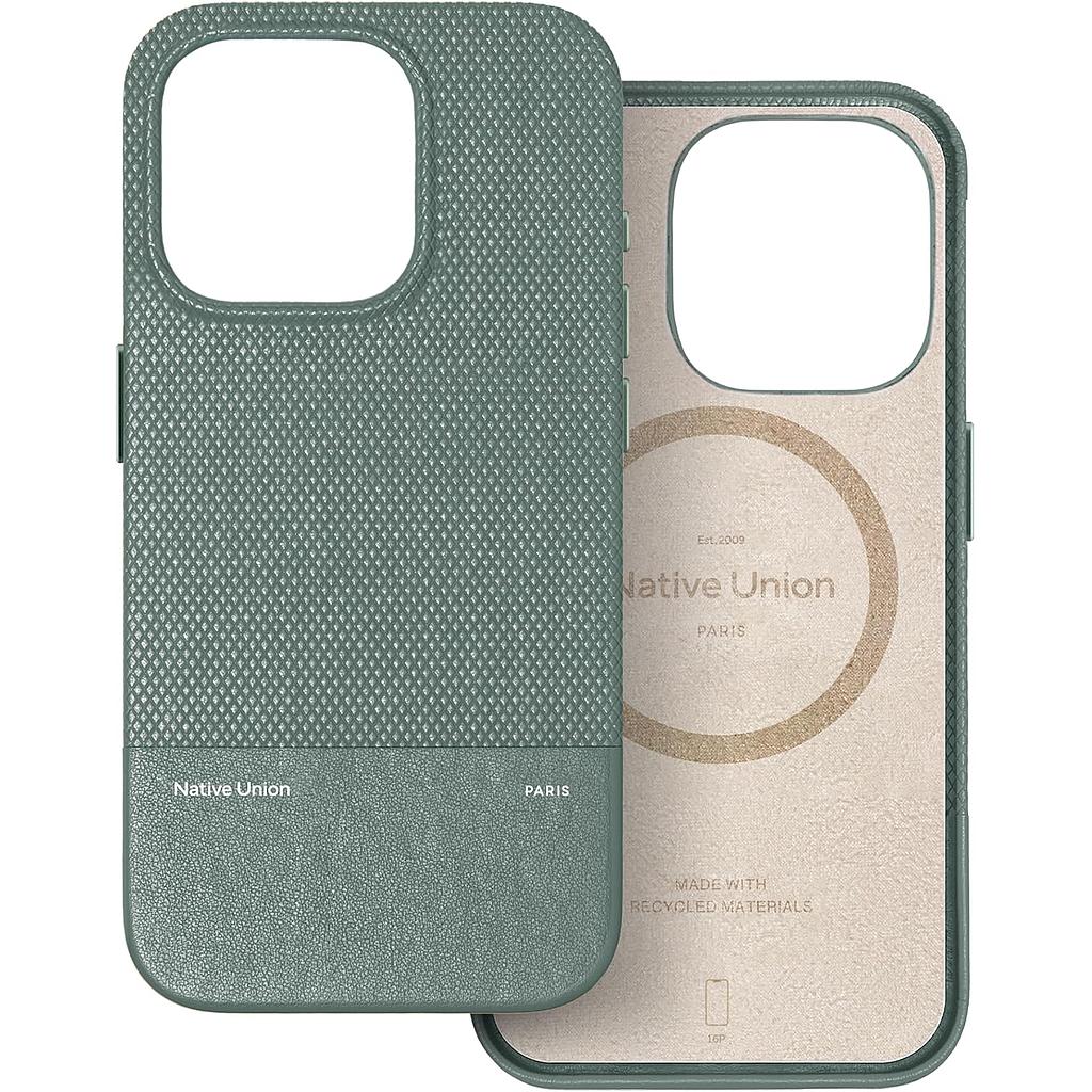 About this item TEXTURED ELEGANCE: Timeless style for your iPhone. Add an elevated touch to your tech with a smooth and cross-grained textured design. BETTER FOR THE EARTH: (Re)Classic Case is made of an animal-free alternative to leather that possesses leather's durable properties. Fully wrapped around a 100% recycled PC frame, it's kinder carry for the planet. EXTRA-DURABLE: This new and improved version of (Re)Classic Case has been rigorously tested and enhanced to deliver even more durable, resistant, and long lasting everyday protection. MAGSAFE COMPATIBLE: Built-in magnets ensure seamless magnetic attachment for fast charging up to 15W & easy use with MagSafe chargers, wallets, and all MagSafe accessories. DROP PROTECTION: Built to last with a durable construction, closed-bottom structure & raised edges. Stay worry-free with drop protection up to 6ft / 1.8m.
